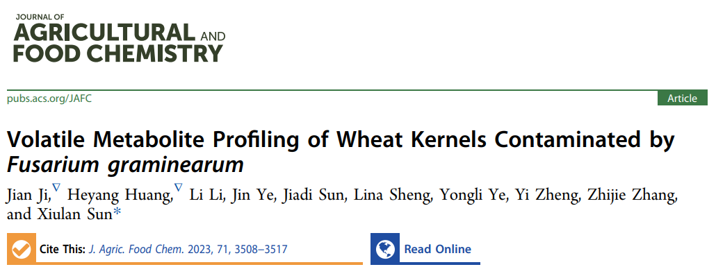 2022年12月28日,江南大学孙秀兰教授团队在国际Top期刊Journal of Agricultural and Food Chemistry(Q1,IF: 5.895)发表题为“Volatile Metabolite Profiling of Wheat Kernels Contaminated byFusarium graminearum”的研究性论文,2023年2月22日被选为封面论文。